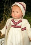 Henriette Serie: Puppe I Bei den Sonderausgaben des Jahres 2008, die anläßlich des 125. Geburtstages von Käthe Kruse an die Meilensteine der Firmengeschichte erinnern, darf natürlich auch die legendäre "Puppe I" nicht fehlen, ohne deren Existenz es keine Puppe V, keine Puppe VIII und keine Puppe XII hätte geben können. Die Puppe I hat einen Stoffkopf, und ihr Körper ist wie damals mit Reh- und Rentierhaar gestopft. Die antike Vorbild für die diesjährige Puppe-I-Replik ist die "Henriette", wie sie im Katalog 1913 zu finden ist (vergl. das Bild links oben - für eine Vergrößerung bitte auf das Vorschaubildchen klicken).